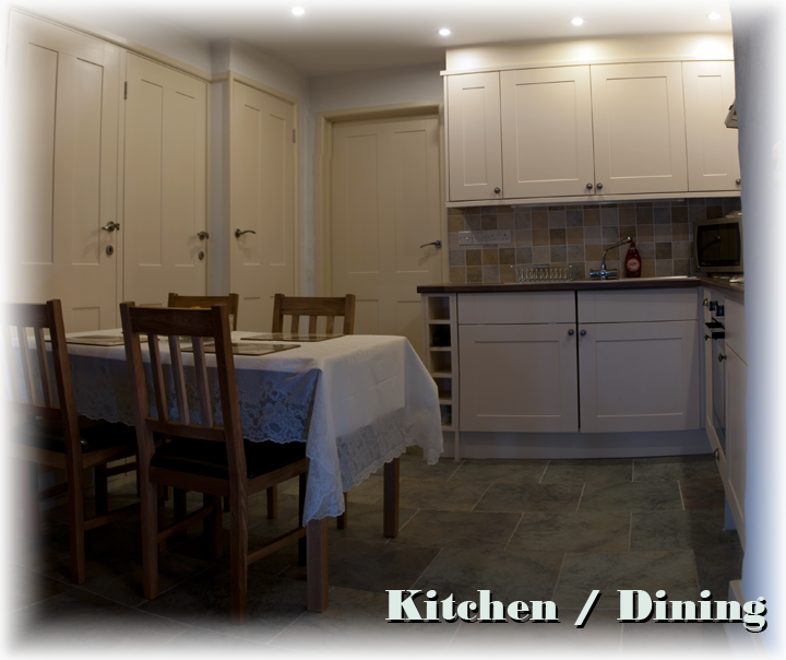 The Kitchen/Dining Area is fully equipped with fitted units, utensils, cutlery,